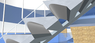 So for Shinya Kimura I have created a 2 level rotating display to show off his amazing motorbikes. To really get a feel of his superbikes I have created a 'S' ramp which sits above the public display room. In the middle of this ramp is a transparent wind tunnel so clients can admire from below.
